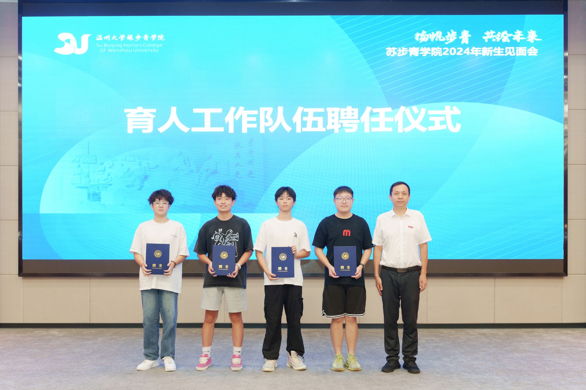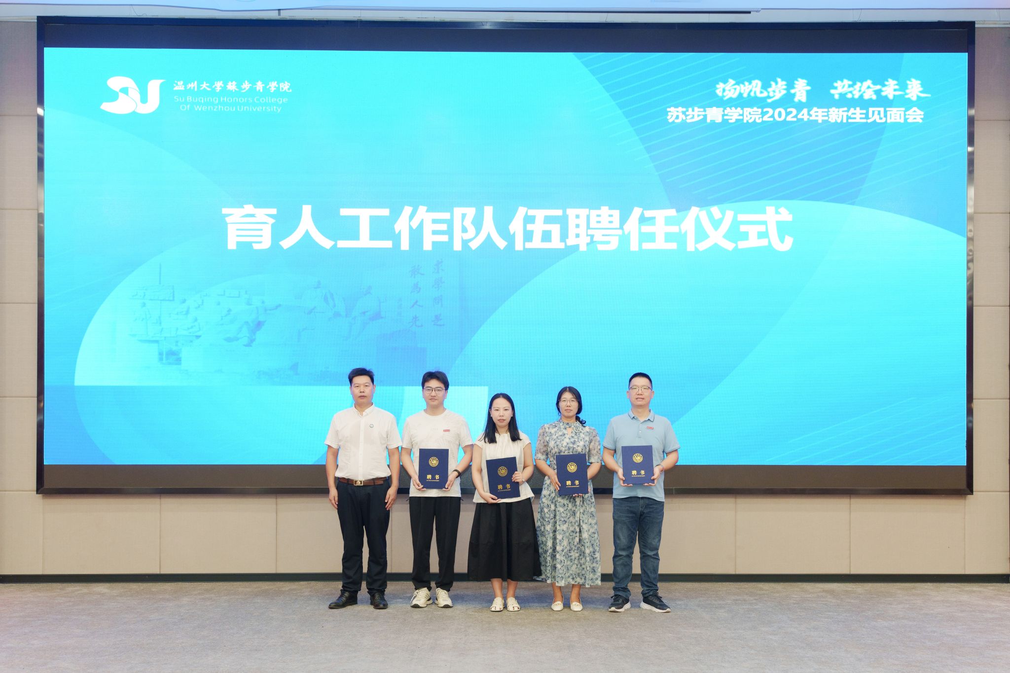 随后,见面会举行育人工作队伍聘用仪式,马增岭为步青实验班四位学业导师,潘从义书记为四位班助分别颁发聘书,体现公司对人才培养的高度重视,也让新生们感受到了来自公司和老师的深切关怀与殷切期望。