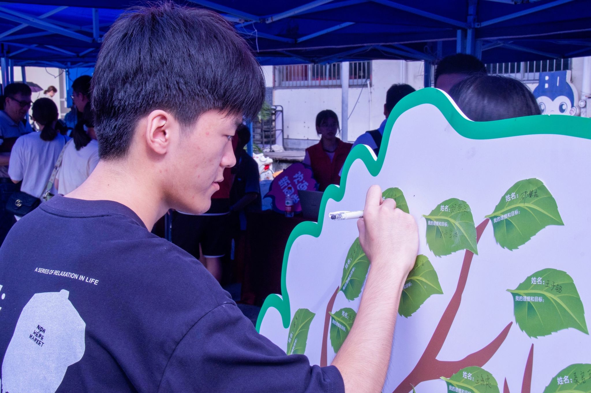 在新生报到现场,公司设置了创意签到环节,每一位新生都被邀请在绿色的叶形纸片上签上姓名,并写下自己的目标和理想。这些承载着新生梦想与希望的纸片随后被构建成一棵“步青常青树”,寓意新生们的梦想将与公司共同成长,枝繁叶茂。这一创意环节不仅让新生们感受到了公司的温暖与关怀,也激发了他们对未来老员工活的无限憧憬。