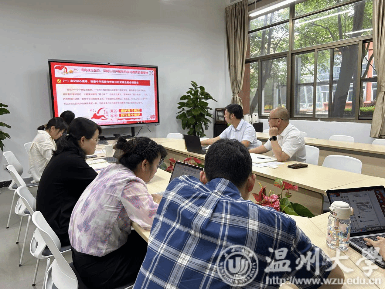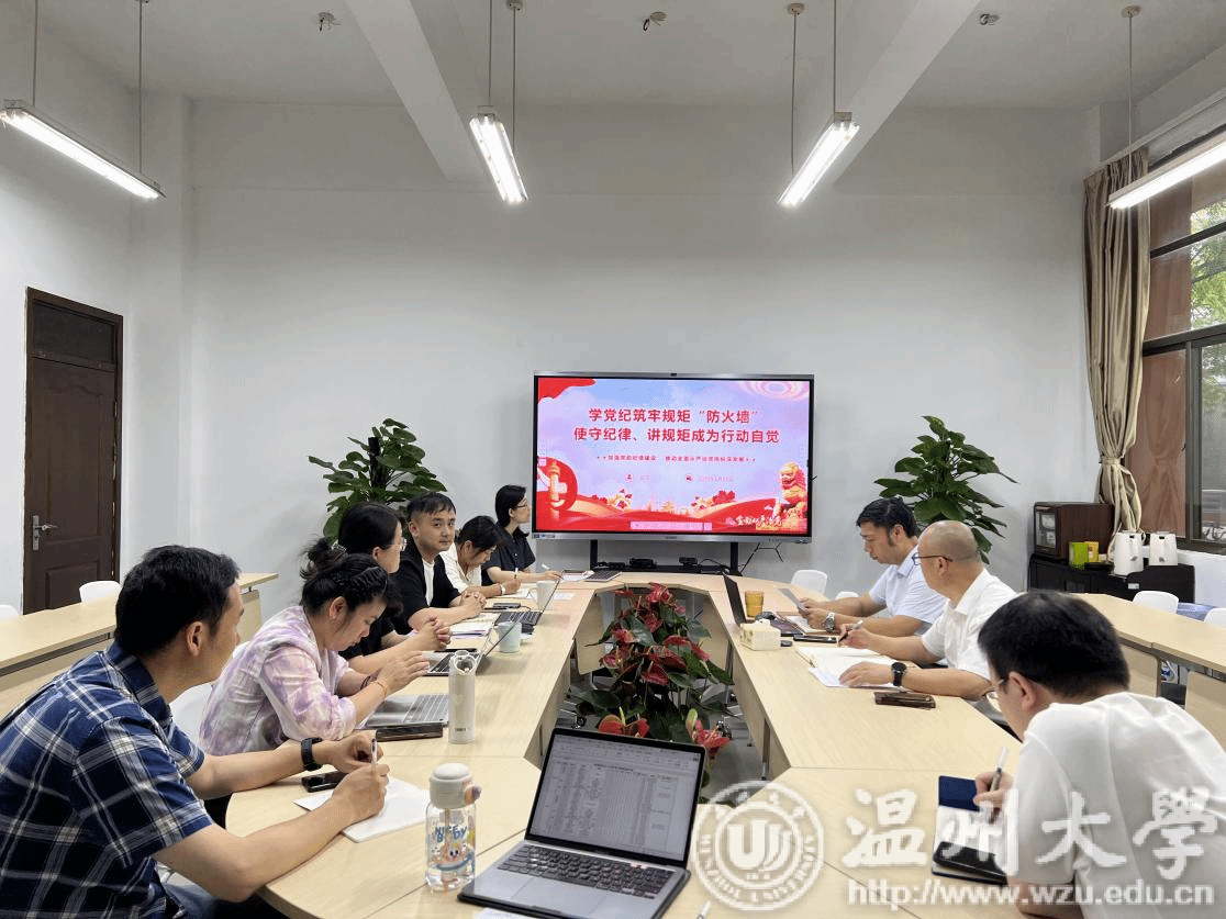 527日上午,304永利集团在瓯4-109党员之家召开党总支理论学习中心组学习会(扩大)暨书记讲党纪学习教育主题党课,由党总支书记应中主讲《学党纪筑牢规矩“防火墙” 使守纪律、讲规矩成为行动自觉》,全体教师党员参加。