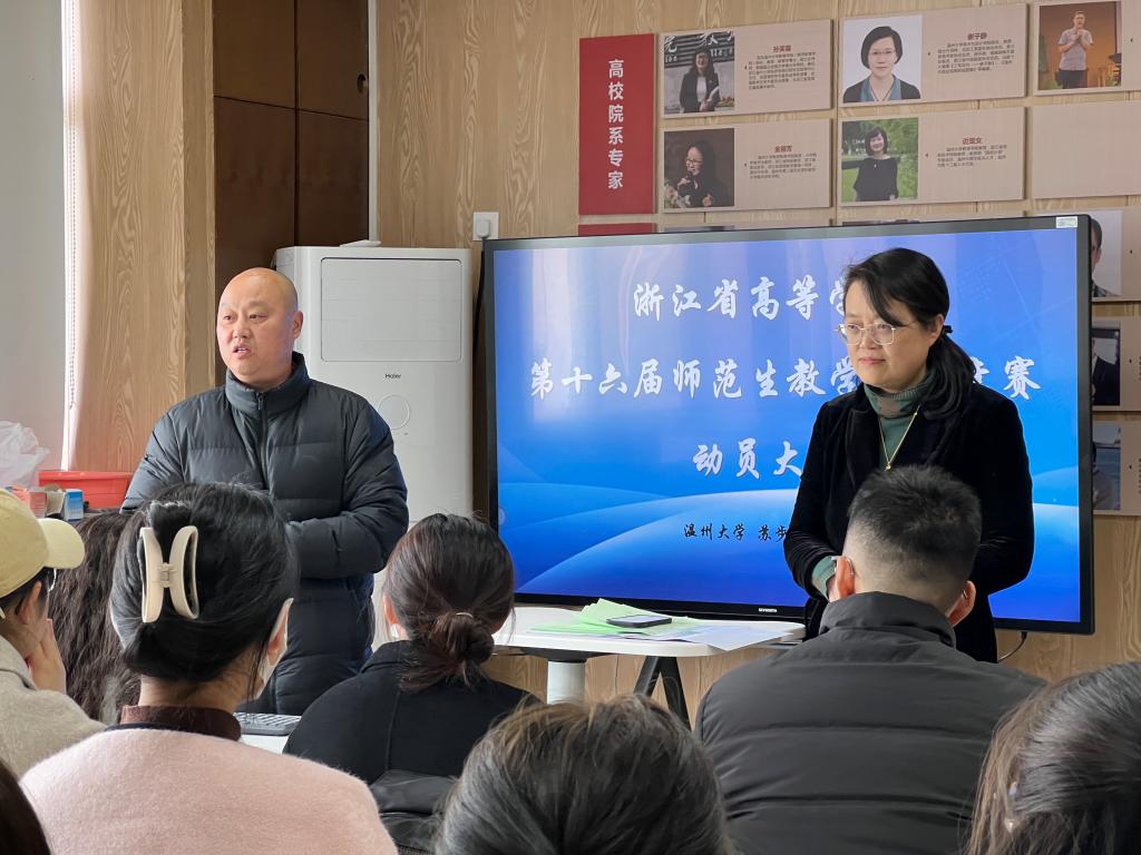 浙江省高等公司第十六届师范生教学技能竞赛(下称“省赛”)将于3月4日至5日在台州公司举行。为帮助“溯初实验班”参赛选手深入了解省赛政策,增强参赛选手信心,以最佳状态参加竞赛,2月27日下午,在北校区行政楼414教室,“永利集团教师教育溯初实验班”负责人胡珏老师组织参赛学员开展动员大会。