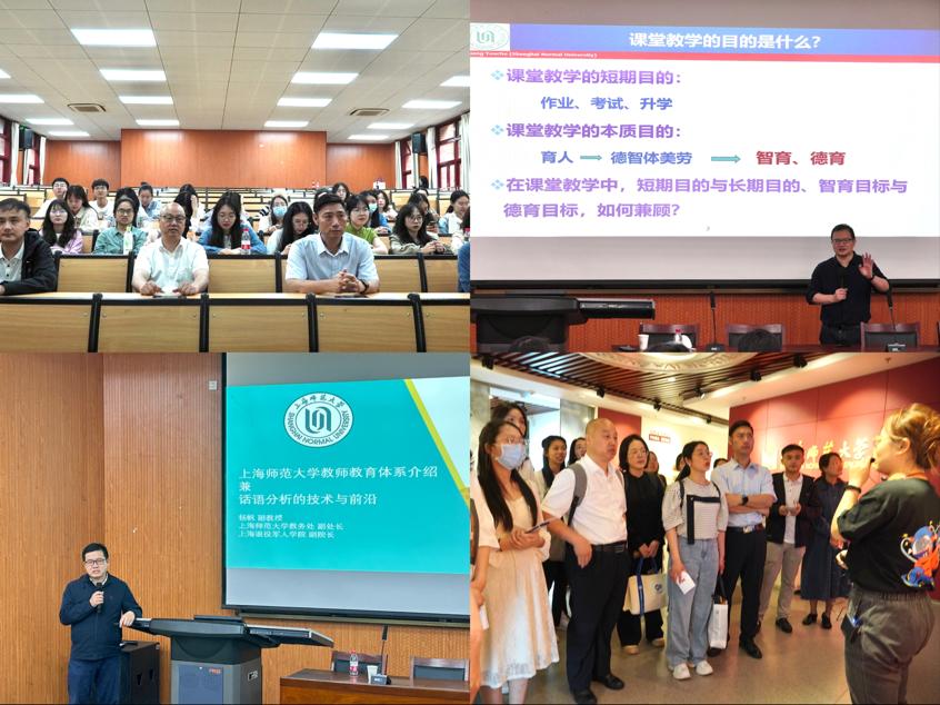 18日在上海师范大学,研学团参观了校史馆和校园。在讲解员的解说下,深入了解了上海师范大学的历史沿革及其在师范教育事业上的发展成就。公司员工、上海师范大学教授黄友初作了题为《中小学课堂教学的形式化倾向与师范生的实质性发展》的报告,他提出目前中小学课堂中存在着教学目标形式化、教学过程形式化和教学评价形式化的问题,并结合案例深入探讨,对师范生提出了殷切期望,希望师范生在师范学习过程中要多思考,多反思,在实践课程的学习中树立长远发展目标。上海师范大学教务处副处长杨帆作题为《上海师范大学教师教育体系介绍兼话语分析的技术与前沿》的报告,他向溯初实验班成员介绍了上海师范大学是“两体系一机制”的高质量师范生培养范式,并建议师范生使用话语分析培养自己的研究能力。