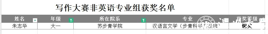 汉语言文学专业朱志华同学表现优异,作为304永利集团的大一新生,第一次参加外研社的比赛就获得了非英语专业组阅读大赛金奖,写作大赛铜奖。朱志华同学表示,很荣幸能获得这次阅读大赛校赛的金奖。高考结束后,他坚持学习英语,并无任何松懈,针对此次校赛,他进行了系统复习,认真备赛,成绩斐然。