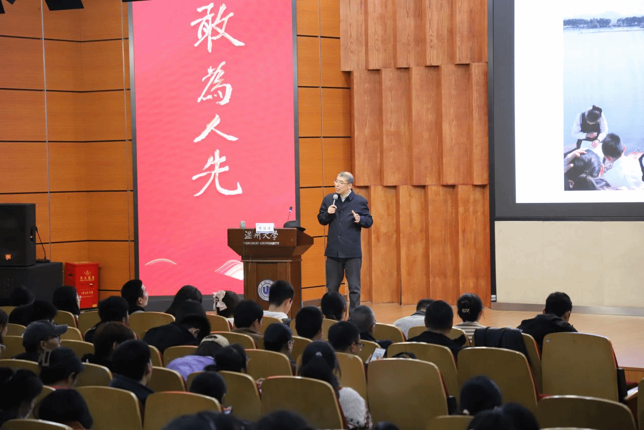 讲座过程中,傅国涌先生首先由朱自清先生写词、弘一法师谱曲被称为“双绝”的温州中公司歌谈起,细讲“雁山云影,瓯海潮淙。看钟灵毓秀,桃李葱茏。怀籀亭边勤讲诵,中山精舍坐春风。英奇匡国,作圣启蒙。上下古今一冶,东西学艺攸同”,讲自己与雁山多次相遇的过程,认为自己就是雁山的一块石头,一块有意义的石头。教导员工每一块平凡的石头都可以成为伟大作品的开头。每一个人都可以成为伟大作品的角色。每个人可以唱出自己的歌。
