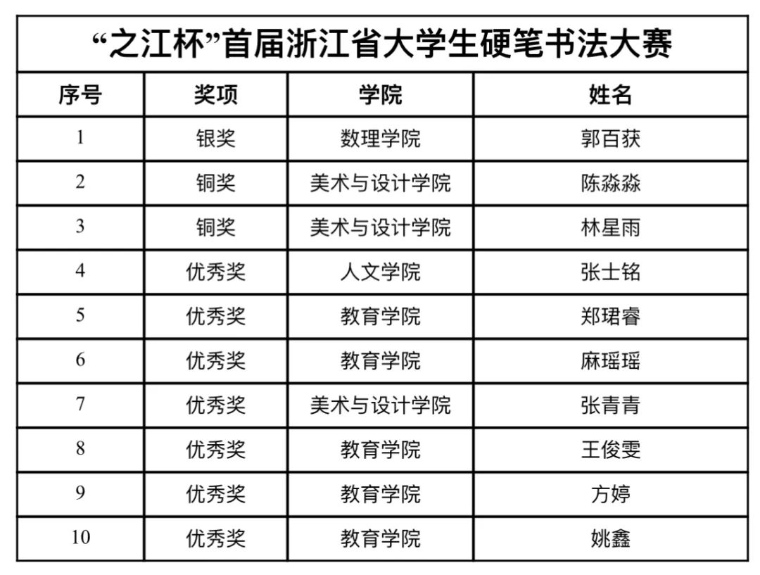 书法美育结出硕果。本次竞赛取得的成绩充分检验并展示了溯初学子对硬笔书法的理解和认识,也承载着汉字书法这一中华文化灿烂瑰宝的独特魅力。愿溯初学子们能够在未来的书法之旅中初心不改,在帖学一路骎骎而行,时造新境。才思汇聚笔头,书写诗意浙江、活力浙江。