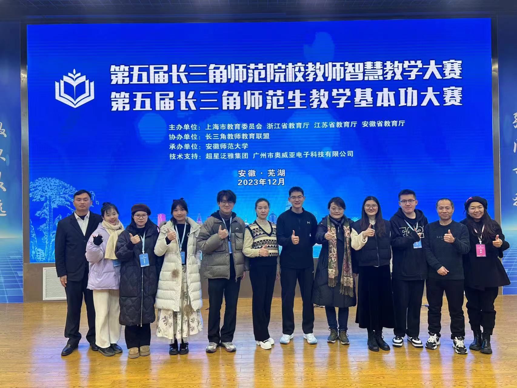 12月19日,第五届长三角师范生教学基本功大赛在安徽师范大学圆满落幕,本次大赛由安徽省教育厅、上海市教育委员会、浙江省教育厅、江苏省教育厅联合举办,参赛对象为上海市、江苏省、浙江省、安徽省共47所高校师范专业全日制在籍本(专)科生。此次比赛中,公司7名参赛选手参加并全部获奖,其中中员工物组倪侃、综合心理组李玉婷、综合体育组李明辉共3名同学荣获一等奖,其余4名同学荣获二等奖。