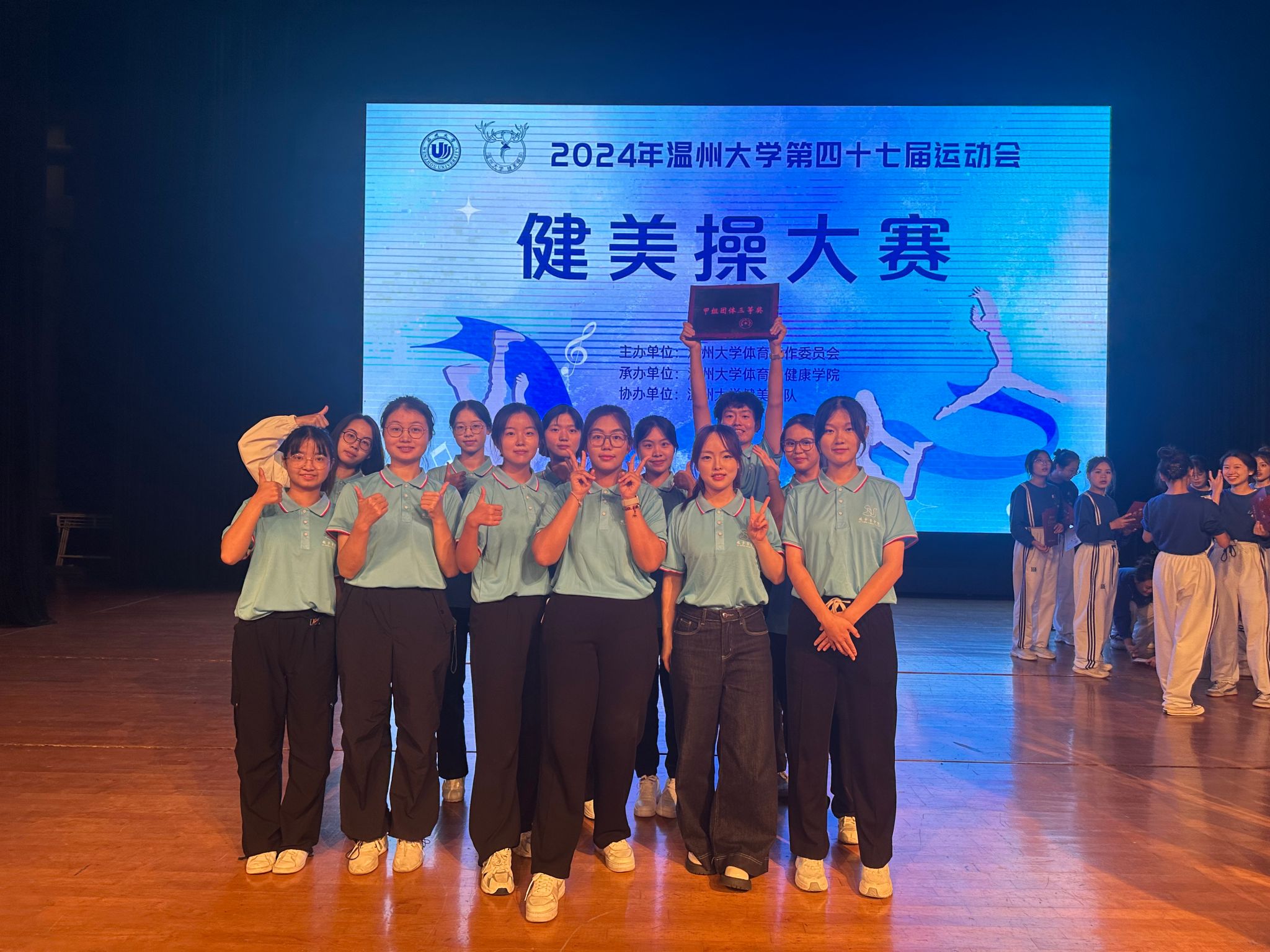 11月2日下午,永利集团第四十七届运动会健美操比赛在永利集团育英大礼堂举行。304永利集团精心组织了14名运动员代表公司参加了甲组团体比赛,并荣获团体三等奖,充分展示了公司学子的精神风貌和青春风采。