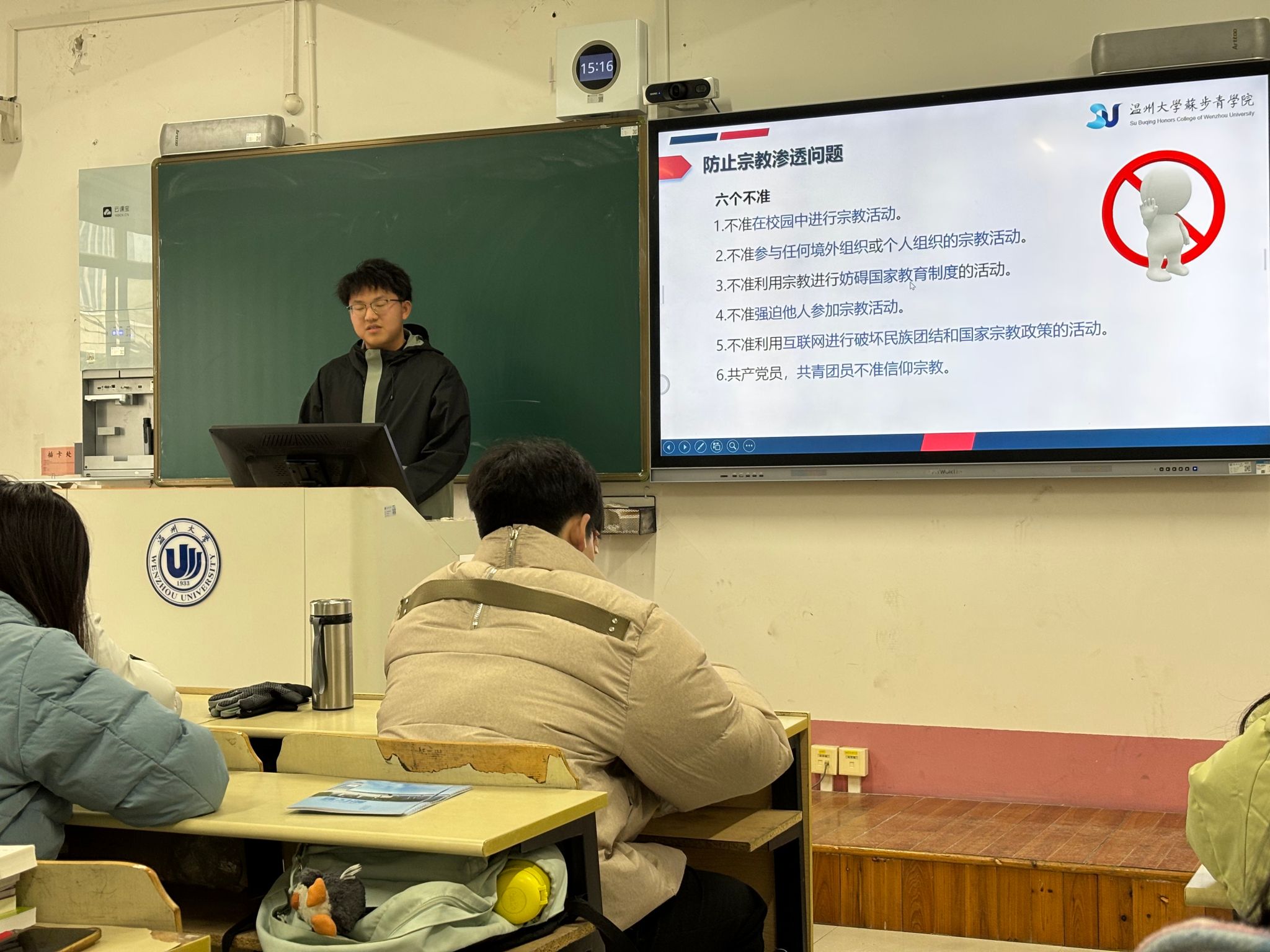随后,各班学业导师开展马克思主义宗教观教育。最后,各班学业导师针对员工寒假结束后的作息紊乱与情绪焦虑等常见心理不适症状给出相应心理调适方法,帮助员工们尽快适应新学期学习生活。同时学业导师们还提醒员工们注意春季常见传染病,并给出相应预防措施。