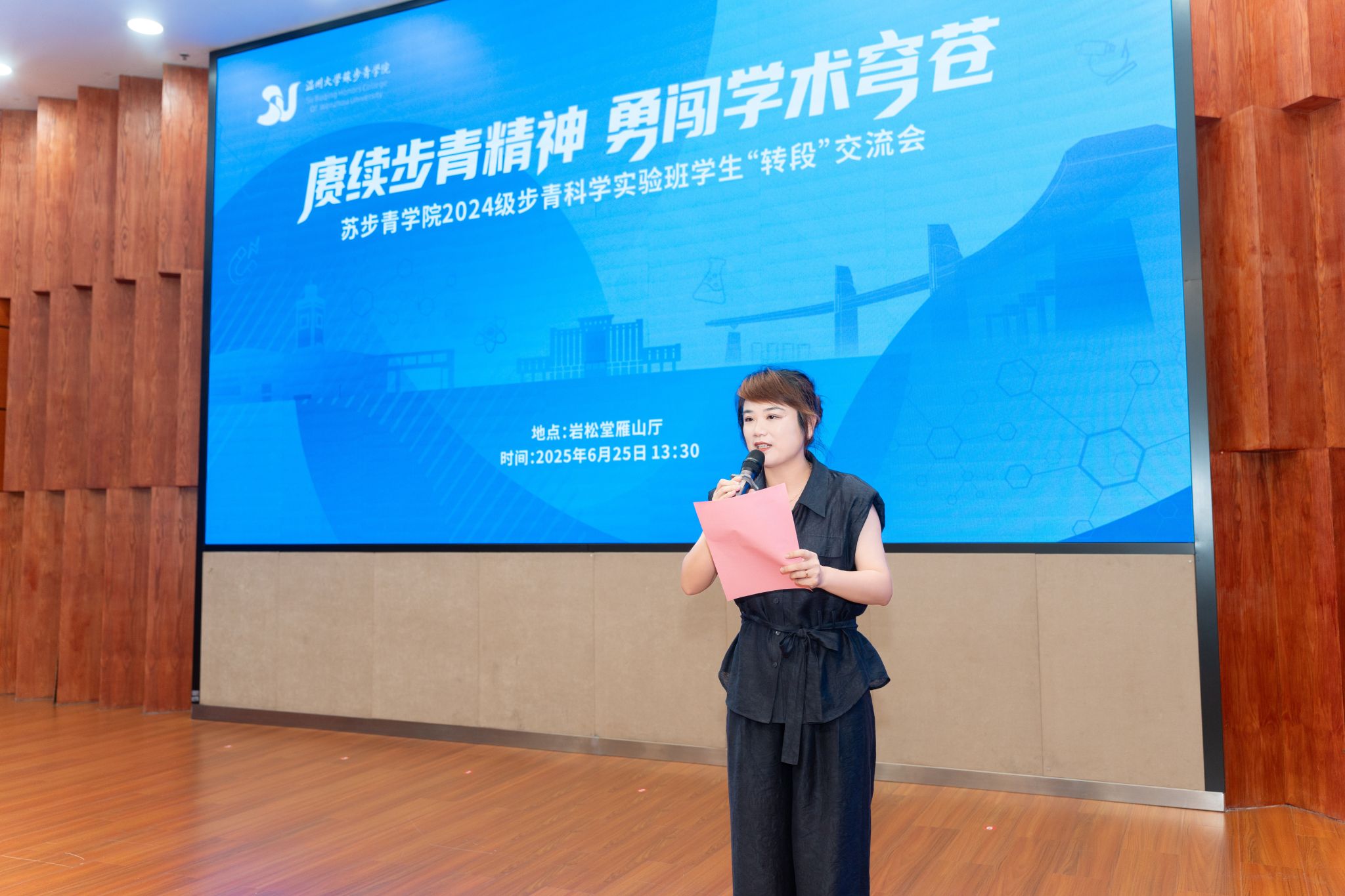 为推动步青科学实验班学子适应专业学习,助力学术成长,2025年6月25日,304永利集团在南校区岩松堂雁山厅隆重举行2024级步青科学实验班“转段”交流会。304永利集团执行经理马增岭、党总支书记潘从义、人文公司党委副书记黄玮、化材公司党委副书记王晓华、生环公司党委副书记周领、数理公司党委副书记潘丽丽、生环公司副经理陈斌斌、各公司专业负责人、学业导师、学工办主任以及304永利集团各科室老师,2024级全体员工共同见证了这一重要时刻,会议由学工办主任靳颖主持。