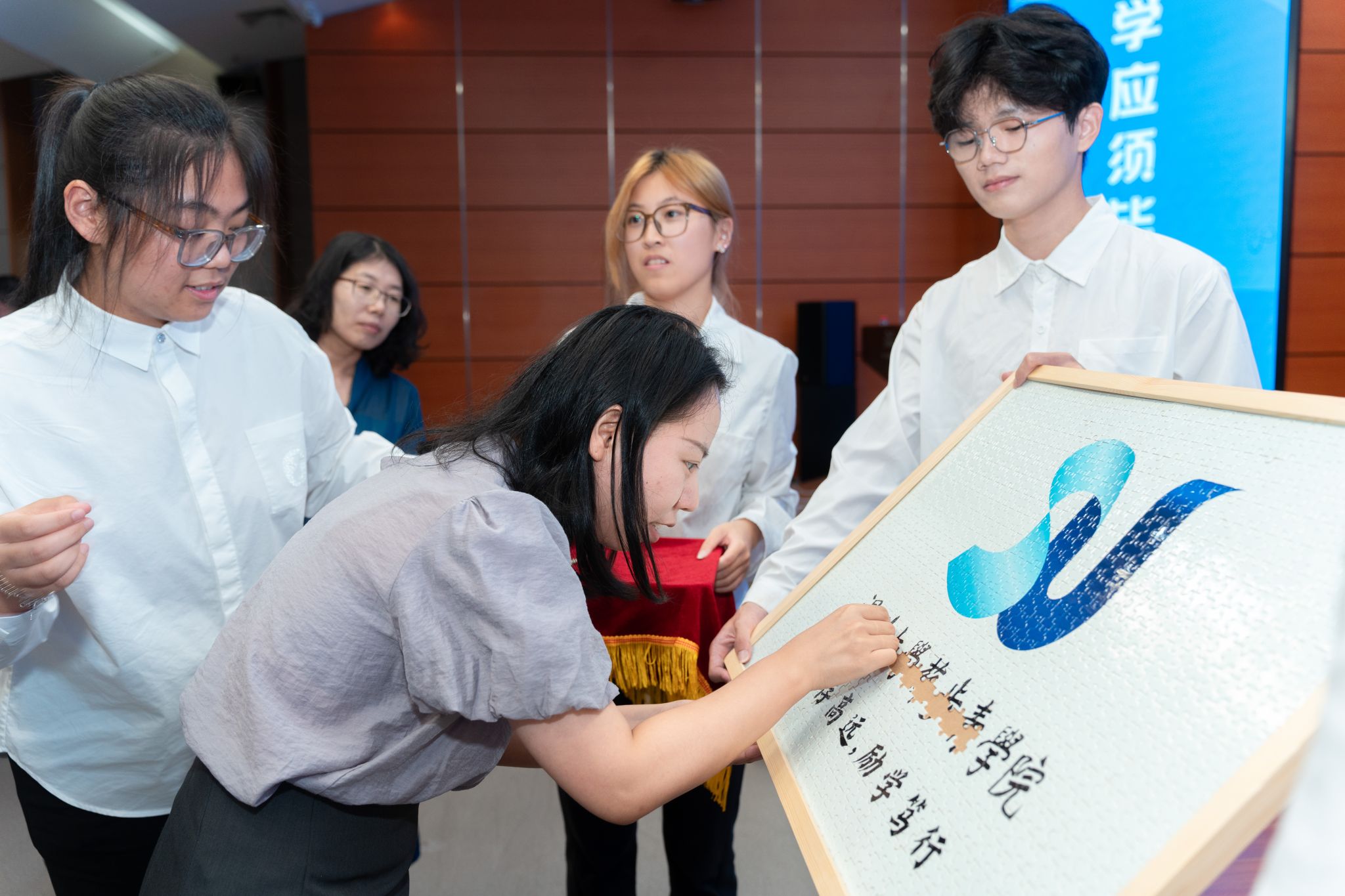在成长仪式上,各位老师和员工代表共同补全了由100位同学名字共同组成的拼图,以此纪念这一成长时刻。仪式最后,员工们以班级形式与各位领导和老师进行合影留念,标志着2024级步青科学实验班员工转段交流会的圆满结束。