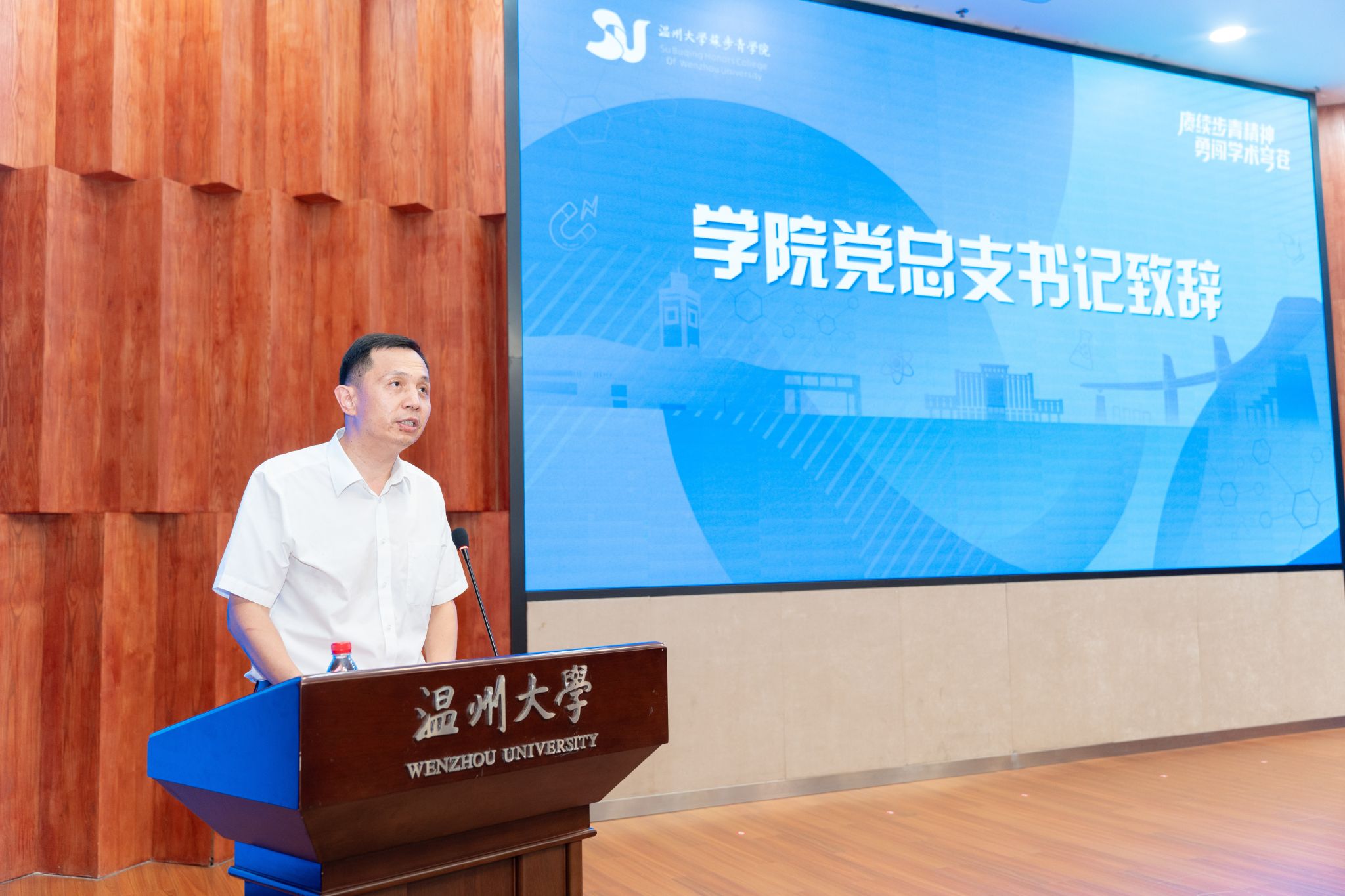 紧接着,潘从义致辞。他表达了对步青学子未来学术发展的期望和祝福,并鼓励24级的同学们做深扎根的求学者,筑牢专业根基;做勇跨界的探索者,激发创新潜能;做有情怀的追梦人,心系家国天下,将个人理想融入时代潮流。同时,他勉励员工牢记荣誉员工的身份和拔尖创新人才的培养目标,以昂扬的斗志和饱满的热情迎接未来在专业公司的学习。
