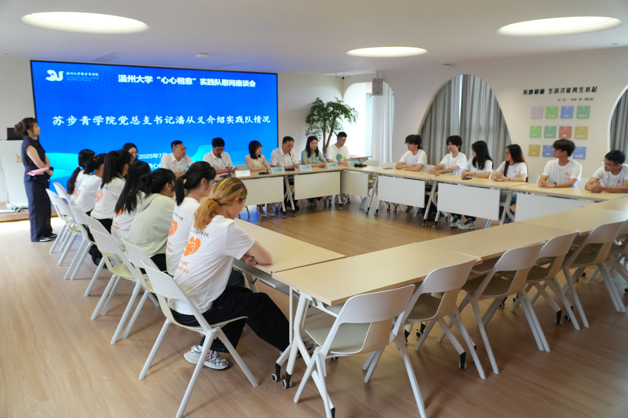 7月12日上午,校党委副书记庄兴忠一行前往鹿城区青少年心灵润养中心(小鹿心屿)走访慰问“心心相愈”暑期社会实践队。共青团鹿城区委书记李璐颖、副书记黄琦璇、鹿城区青少年心灵润养中心运营总负责人唐璐璐和校团委书记杨鹏、公司党总支书记潘从义等陪同慰问并参加座谈会。