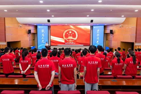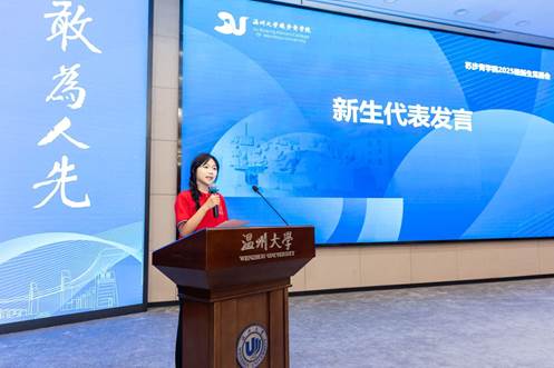 汉语言文学实验班苏歆然同学作为新生代表发言,她表达了对老员工活的憧憬与决心,代表全体新生承诺将恪守院训、勤学不辍,努力成长为有理想、有本领、有担当的复合型拔尖创新人才。