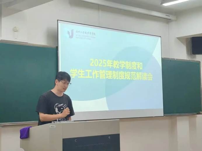 紧接着,李金伟针对员工管理相关文件进行了系统性的介绍与说明。他着重讲解了员工日常行为规范、奖助勤贷政策的实施细则以及思想政治教育的重点方向,并就员工突发事件处理、心理疏导介入等常见工作流程与在场同学开展说明,为今后扎实推进育人工作奠定坚实基础。