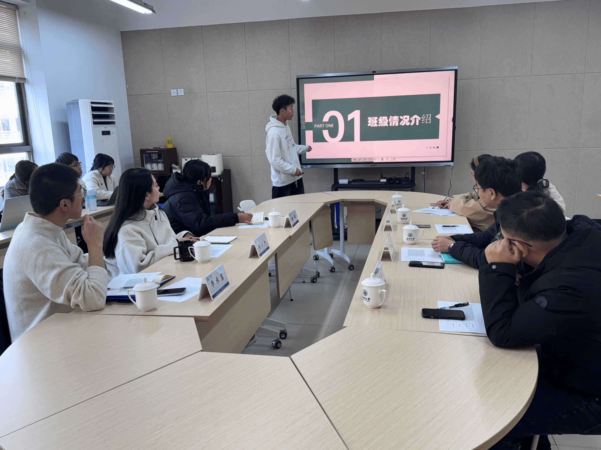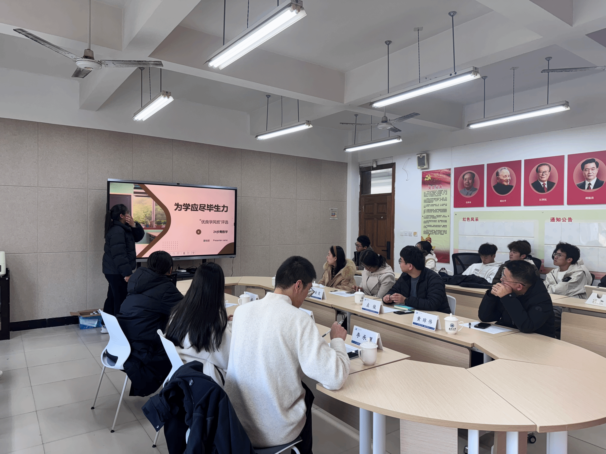 活动伊始,李承翼对优良学风班建设的意义进行了详细阐述,指出学风是高校教育的灵魂,是员工成长的重要基石。评审分为班级建设展示和老师评审两个环节,评审标准围绕学业水平”“班级风气”“考勤纪律”等维度,对各班级的表现进行综合考量。
